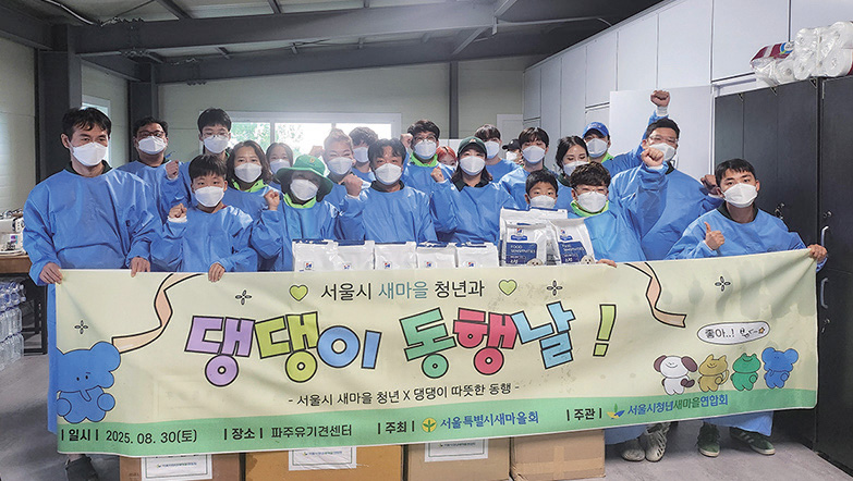 서울청년새마을연합회(회장 장유리나)는 지난 8월 31일 파주시에 위치한 유기견센터에서 유기견 봉사활동을 진행했다. 갑작스러운 폭우로 유기견산책은 아쉽게 취소되었으나, 봉사자들은 실내청소, 급식공간정리, 소독작업 등 보호소 환경 정비에 힘을 모았다. 특히, 200만 원 상당의 알러지처방식 사료를 보호소에 기부했으며, 헌 수건과 담요 등 필수물품도 함께 전달했다. 장유리나 회장은 “작은 도움이지만 유기견이 더 나은 환경에서 생활하기를 바라며, 봉사활동을 통해 생명존중문화를 확산시키겠다”고 밝혔다.