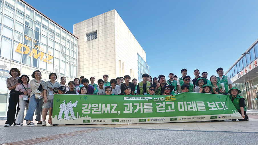 강원도새마을회(회장 홍순선)는 지난 8월 23일 강원지역 청년연대 회원과 대학동아리 회원, 시·군 직 원 등 MZ세대 60여 명이 참여한 가운데 자유민주주의 현장체험 활동을 진행했다. 참가자들은 고성 군 통일전망대와 DMZ박물관을 견학하고 공동체 활동을 통해 분단의 현장을 직접 체험했다. 참석자 들은 “이번 활동이 잊고 지냈던 아픈 역사를 돌아보고, 안보의식을 되새기는 소중한 계기가 되었다”고 소감을 밝혔다.