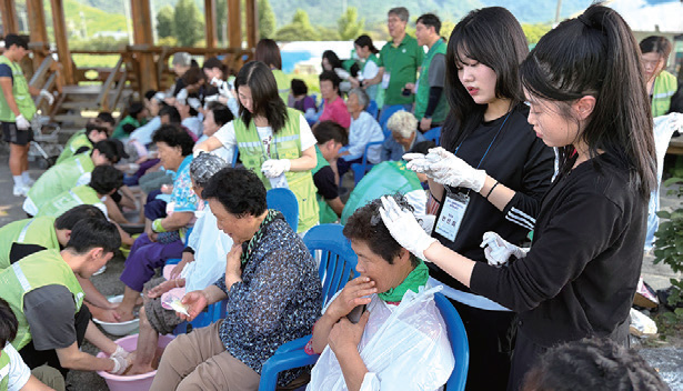 충청북도새마을회(회장 남재호)는 지난 8월 30일부터 31일까지 충북 보은군에서 대학새마을동아리 농 촌봉사활동을 전개했다. ‘MZ세대와 함께하는 새마을운동’을 주제로 진행된 활동은 8개 대학 새마을동 아리 회원 60명이 참여했으며, ㈜대화건설(회장 이화련)이 후원했다. 참석자들은 농가에 부족한 일손을 보탰고, 구인리마을 경로당에서 어르신 20여 분을 모시고 염색과 세족 봉사를 펼쳤다. 이웃사랑을 실천 했다. 남재호 회장은 “앞으로도 세대와 지역이 함께하는 나눔과 봉사의 장을 만들어 나가겠다”고 밝혔다.