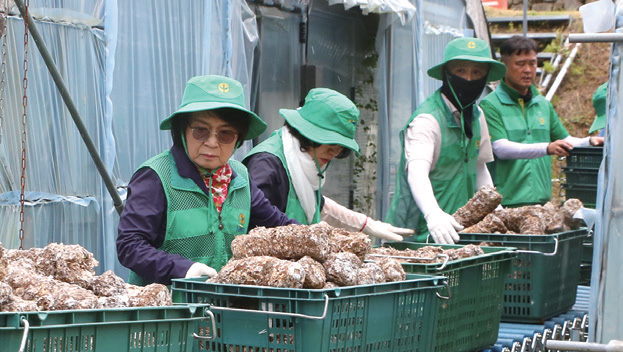 부산시새마을회(회장 백옥자)는 지난 8월 26일 경남 거창군 신원면에서 농촌일손 돕기 봉사활동을 펼쳤 다. 이날 부산시새마을회 임원단과 부녀회, 대학새마을동아리연합회 등 140여 명이 참여해 버섯 농가의 폐배지를 정리하고 고추 수확을 도왔다. 대학새마을동아리연합회(회장 한다은)도 같은 날 신원면 일대 에서 어르신 50여 명을 대상으로 건강검진과 인지 향상 프로그램을 진행하고 돌봄 봉사도 병행하며 어 르신들의 말벗 되어 드리기 활동을 했다.