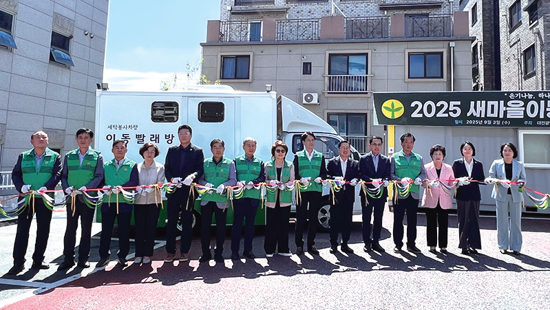 대전시새마을회(회장 박영복)가 주최한 ‘새마을이동빨래방’ 개장식이 지난 9월 3일 동구 용전동 행정복지 센터에서 열렸다. 이번 행사는 지역 내 취약계층을 위한 생활복지 서비스 확대를 목적으로 마련됐다. 대전 시새마을회의 이동빨래방 차량은 1톤 LPI 수퍼캡 초장축 가스차량으로, 드럼세탁기 2대, 건조기 1대, 발 전기, 전기온수기, 물탱크 등 세탁에 필요한 설비를 갖췄다. 차량은 연중 주 5일 동안 대전시 82개 동을 순 회하며 홀몸 어르신, 장애인, 저소득층 등 세탁이 어려운 이웃들에게 직접 서비스를 제공한다.