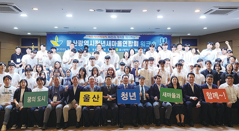 울산시새마을회(회장 정대식)는 지난 9월 6일부터 7일까지 경주 성호리조트에서 ‘2025 청년새마을연 합회 워크숍’을 개최했다. 이번 행사는 울산청년새마을연합회(회장 이심경)가 주최하고 울산시새마을 회가 주관했으며, 전국 청년연합회장단과 지역 구·군 청년연대, 대학 동아리 회원 등 110여 명이 참석 했다. 워크숍은 ‘청년새마을과 함께하는 꿈의 도시 울산’을 주제로 열렸으며, 청년조직의 역할 강화와 네트워크 구축을 위한 특강, 사례 발표, 자유토론 등 다양한 프로그램이 진행됐다.