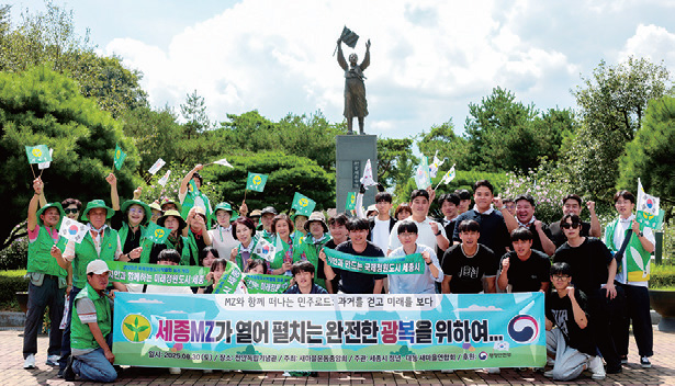 세종청년새마을연대 동행(회장 김종현)과 대학새마을동아리 다가치(회장 김홍석)는 지난 8월 30일 회 원 60여 명과 함께 천안 독립기념관과 유관순 열사 기념관을 방문했다. 이번 행사는 광복 80주년의 의 미를 되새기고, 통일이라는 시대적 과제를 해결해 ‘완전한 광복’을 이루자는 취지로 마련됐다. 김종현 회장은 “독립정신 함양과 보훈문화 확산을 통해 국민 통합과 통일 대한민국 건설에 기여할 수 있는 사 회 분위기를 만드는 데 MZ세대가 앞장서겠다”고 밝혔다.