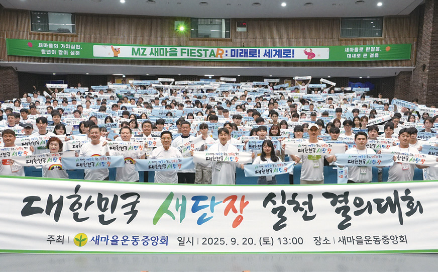 중앙회는 지난 9월 20일 중앙회 대강당에서 청년새마을연대와 대학새마을동아리 회원 500여 명이 참석한 가운데 ‘대한민국 새단장’ 캠페인 실천 결의대회를 개최했다. 행정안전부가 주관하는 이번 캠페인은 추석 연휴와 11월 APEC 정상회의를 앞두고 깨끗한 대한민국을 만들기 위한 범국민 환경정화 운동이다. 중앙회는 9월 22일부터 10월 1일까지 전국 180만 회원과 함께 하천·공원·도로 등에서 환경정화 활동을 펼치며 지속가능한 녹색 새마을운동을 확산했다.