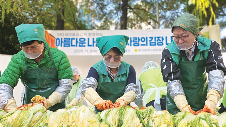 부산시새마을회(회장 백옥자)는 지난 11월 5일 부산시청 녹음광장에서 ‘2025 사랑의 김장 나누기’ 사업을 열었다. 부산시부녀회(회장 김선희) 주관, 새마을금고중앙회와 부산새마을금고가 공동 주최한 행사에는 박형준 부산시장과 새마을가족 등 150여 명이 참여해 배추 4,000포기로 김장을 담가 이웃에게 전했다. 이어 7일과 10일에는 대저생태공원과 금정구민운동장에서 ‘2025 하반기 다시 입을 수 있는 옷 모으기 경진대회’를 열고 의류 120여 톤을 수집·판매했다. 수익금은 소외계층을 돕는 데 사용된다.