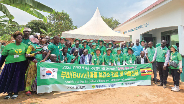 대구시새마을회(회장 최영수)는 지난 9월 5일부터 13일까지 아프리카 우간다 오모로(Omoro) 지역 부비(Buvvi) 마을을 방문해 새마을세계화사업 3차년도 현장 점검 및 지원 활동을 펼쳤다. 오모로 지 역에서는 시멘트 우물과 곡물저장창고, 로컬마켓 준공식, 부비마을에는 보건소 약품·물품과 작은도 서관 서가 및 도서를 기증했다. 또한 재활용 티셔츠 250벌과 친환경 정수기 30대를 전달했다. 최영 수 회장은 “지속 가능한 발전과 국제협력을 위해 지구촌 새마을운동을 더욱 확산하겠다”고 밝혔다.
