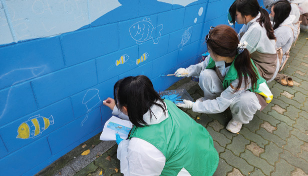 인천시청년새마을연합회(회장 김학만)는 지난 10월 24~25일 계양구 효성2동에서 ‘회색 담장 위에, 청년이 희망을 그리다!’를 주제로 한 벽화그리기 봉사활동을 펼쳤다. 문화새마을운동의 일환으로 청 년의 감성과 공동체 정신을 담아 담벼락을 새롭게 단장한 것이다. 한편 인천시새마을회(회장 이황일) 는 지난 9월 25일 중구 선녀바위 일원에서 ‘인천새마을 푸른바다 비치코밍’을 열었다. 새마을지도자 와 시민 100여 명이 참여해 해안 쓰레기를 수거·재활용하며 환경 보호와 자원순환에 앞장섰다.