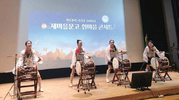 문고 광주시지부(회장 김동노)는 지난 10월 28일 5·18기념문화센터에서 ‘제4회 새마을문고 한마음 콘서트’를 개최했다. 이번 행사는 달빛동맹을 맺은 문고 대구시지부와 전북·전남지부, 광주전남베트 남교민회가 함께해 동서 화합의 장이 되었다. 시낭송·노래·댄스·악기 연주 등 다양한 공연이 펼쳐졌으 며 250여 명의 새마을지도자와 시민이 참여했다. 김동노 회장은 “문화로 지역사회를 밝히는 독서운동 의 중심이 되겠다”고 밝혔고, 강기정 광주시장은 “달빛동맹 강화에 새마을의 동참을 바란다”고 말했다.