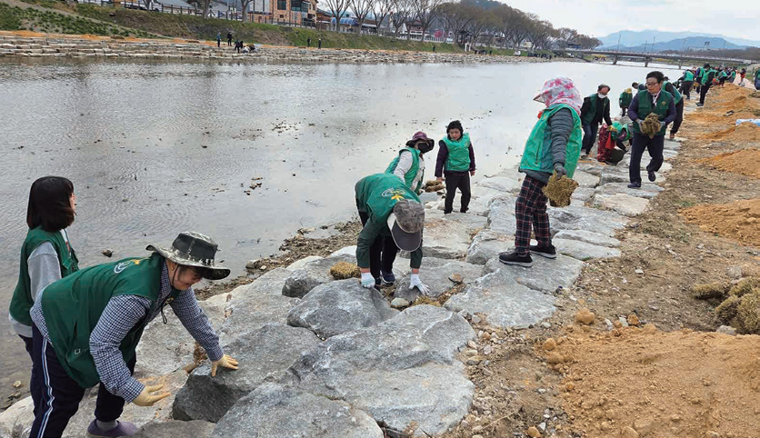 하나, 마을 및 하천 주변에 꽃잔디를 심고 잡초를 제거해 아름다운 경관 조성