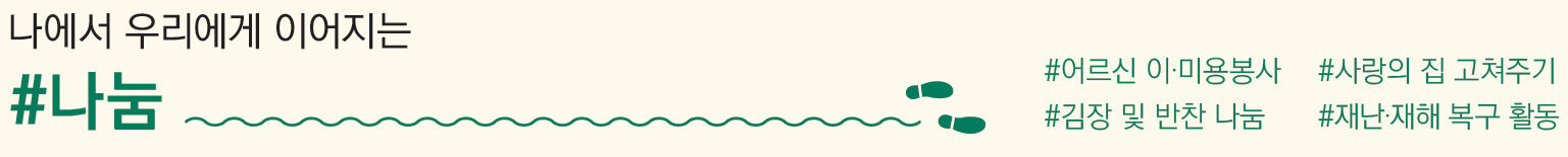 나눔의 마음에서 비롯된 따뜻한 손길, 지역을 잇는 연대의 손길, 지구를 지키는 작은 실천, 청년들이 만들어낸 새로운 변화,