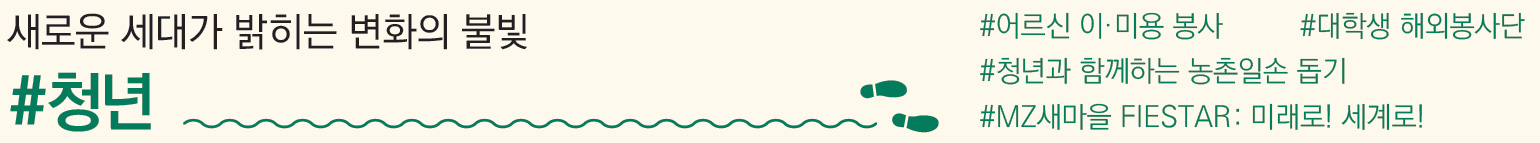 새마을운동의 여러 현장에서는 청년새마을연대와 대학새마을동아리 등 청년들의 열정이 또렷하게 드러나는 변화가 일어났다. 어르신 이·미용봉사와 농촌일손 돕기, 지역 환경정화 프로젝트 등 그들의 방식으로 직접 기획하고 실천한 움직임은 새마을운동의 미래를 보여주는 분명한 신호였다.