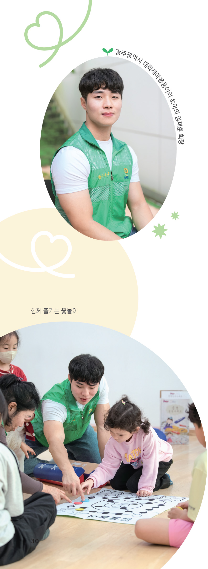 다문화가정이 늘어나는 것은 광주가 다양한 문화를 포용하며 더욱 풍요로워지고 있다는 증거라고 생각합니다. 이러한 변화 속에서 우리 새마을동아리가 ‘근면·자조·협동’의 새마을정신을 바탕으로 지역사회 통합의 가교 역할을 해야 한다고 생각합니다. 새마을운동의 본래 의미가 ‘새로운 마을(공동체)’인 만큼 다문화가정이 지역사회 안에서 하나가 될 수 있도록 우리 문화를 이해하고 서로의 문화를 존중하는 교류의 장을 마련하고 싶습니다. 특히 청년들이 먼저 다가가 다문화가정과 친밀한 관계를 형성하는 것이 무엇보다 중요하죠.