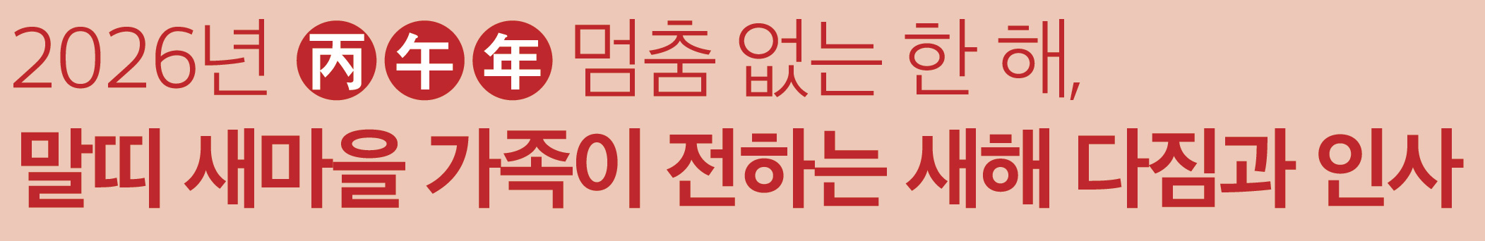 2026년 병오년(丙午年) 말(馬)의 해, 희망찬 새해가 밝았습니다. 여러분 가정에 건강, 평안, 그리고 기쁨이 가득하기를 기원합니다.