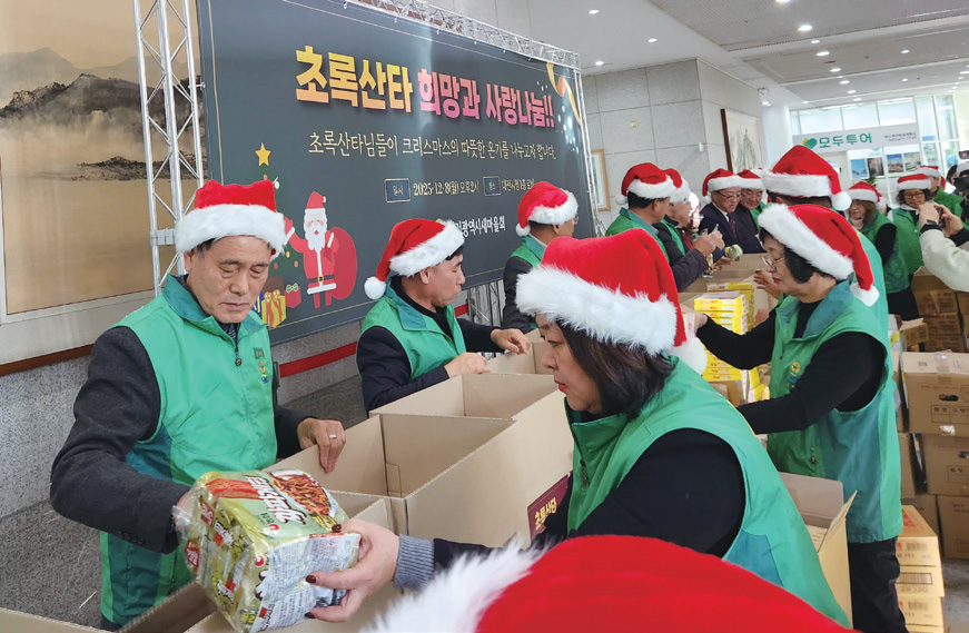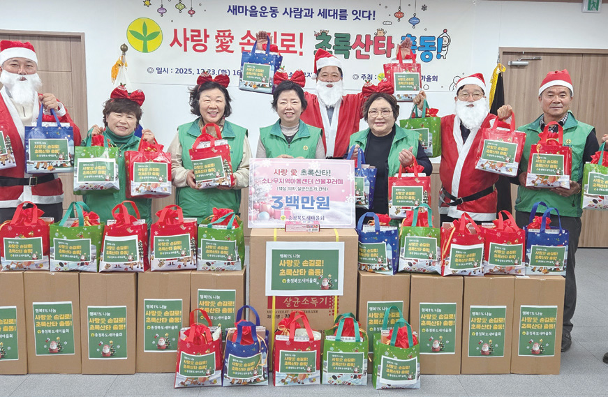 대전시새마을회(회장 박영복)는 지난해 12월 8일, 대전광역시청에서 ‘초록산타 희망과 사랑나눔’ 행사를 열고 소외계층 아동과 100가구에 크리스마스 선물을 전달했다. 행사에 참여한 이장우 시장과 조원휘 시의장 등 주요 인사와 시·구새마을회 회장단 및 새마을지도자 등 60여 명은 초록산타로 변신해 선물꾸러미를 만들어 나눔을 실천했다.
