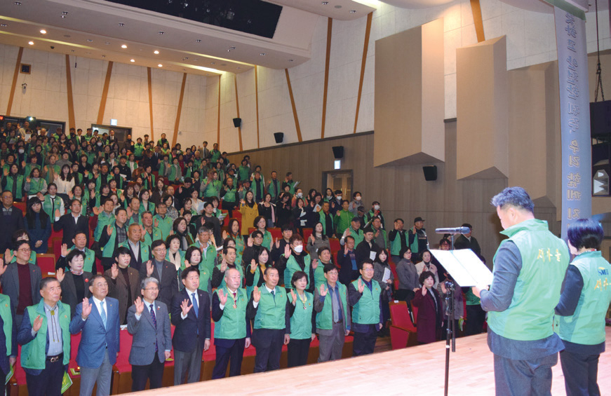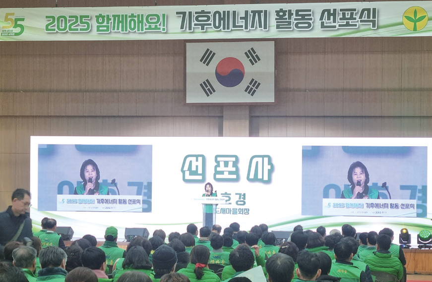 경기도새마을회(회장 이호경)는 지난해 12월 4일, 동두천국민체육센터 실내체육관에서 ‘2025 함께해요! 기후에너지 활동 선포식’을 개최했다. 이번 선포식에는 임상오 경기도의회 안전행정위원회 위원장, 박형덕 동두천시장, 도내 시·군새마을회장단, 새마을지도자 등 총 1,100여 명이 참석해 기후위기 대응의 필요성과 실천 의지를 공유했다.
