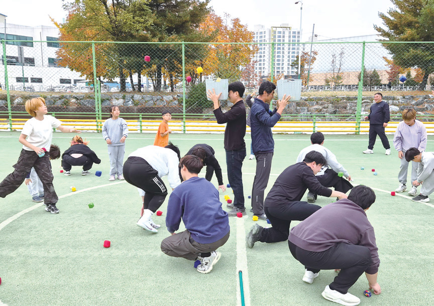 • 신도안 풋살장에서 2인 3각 달리기, 협동 릴레이, 줄다리기 등 다양한 미니 체육게임 진행