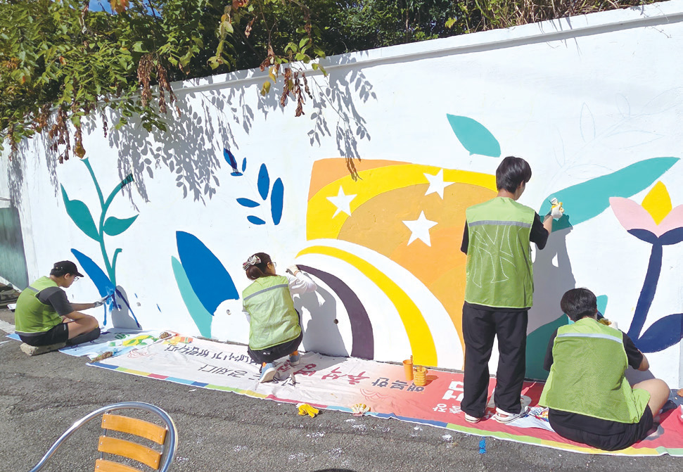 교내 벽화 재정비 사업을 꼽고 싶어요. 2024년부터 정말 진행하고 싶었던 활동 중 하나였습니다. 새마을운동중앙회 벽화 키트 지원사업을 신청하고 학교도 예산 지원을 요청하는 등 사전 준비에 많은 공을 들였습니다. 관내 청년 디자이너와 함께 벽화 디자인 시안을 구상하며 완성도를 높였고, 통영시 청년센터에서 ‘UP-Finder’ 사업과 연계해 부족한 사업비를 지원해 주었습니다. 여러 기관과 협력해 진행한 만큼 책임감도 컸죠.