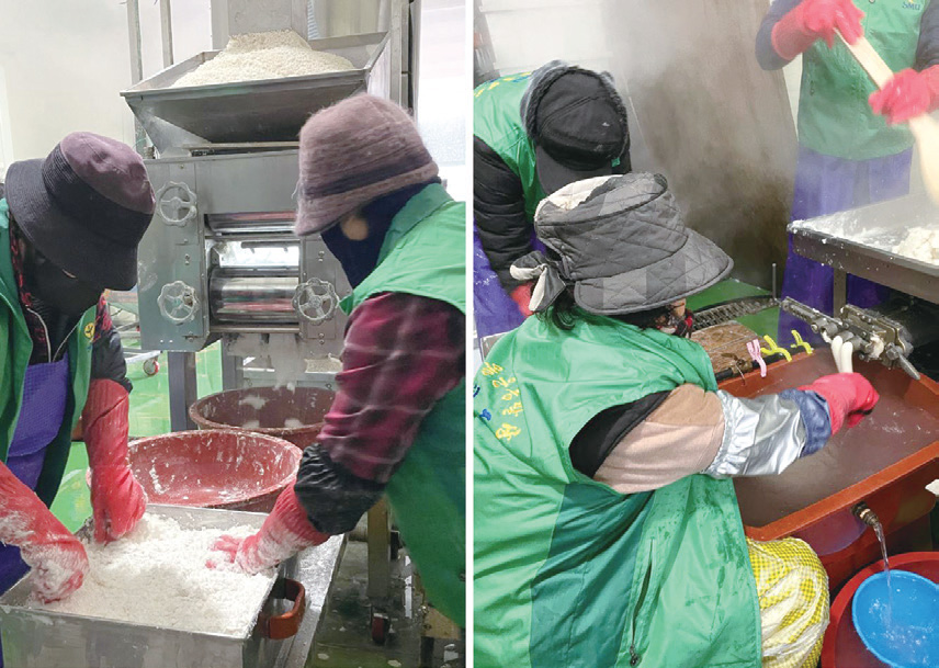 • 새마을지도자 및 부녀회원들이 함께 떡국떡을 준비하고 개별 포장